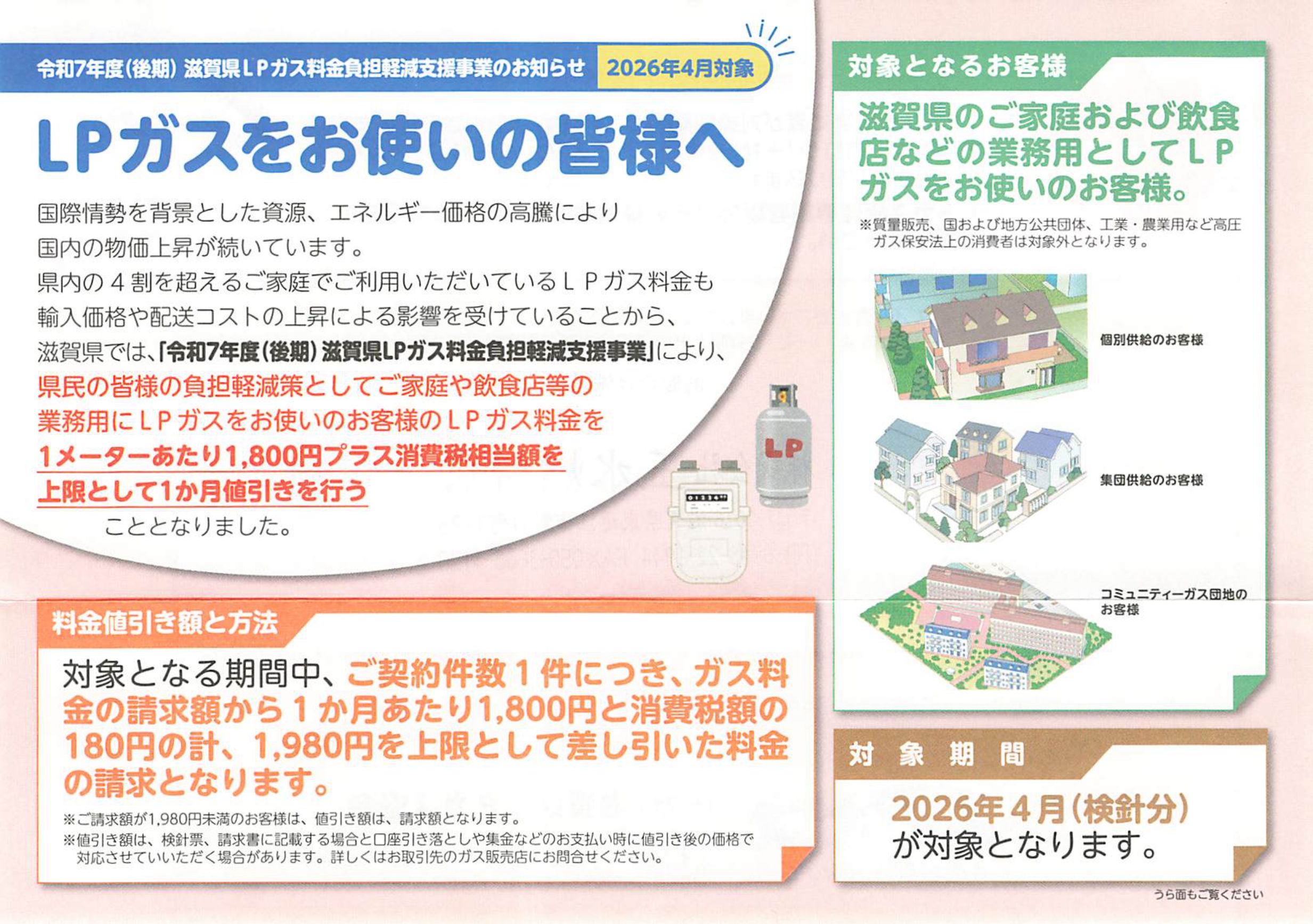 【滋賀県】LPガス料金の値引きについて|2026年4月検針分(最大1,980円)